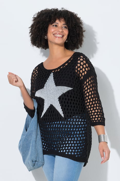 Sweter, luźny krój, dzianina z grubymi oczkami, gwiazda, rękaw 3/4